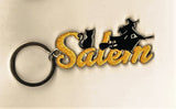 Metal keyring with Salem in sparkly orange, yellow, or purple letters. 3 3/4" long.